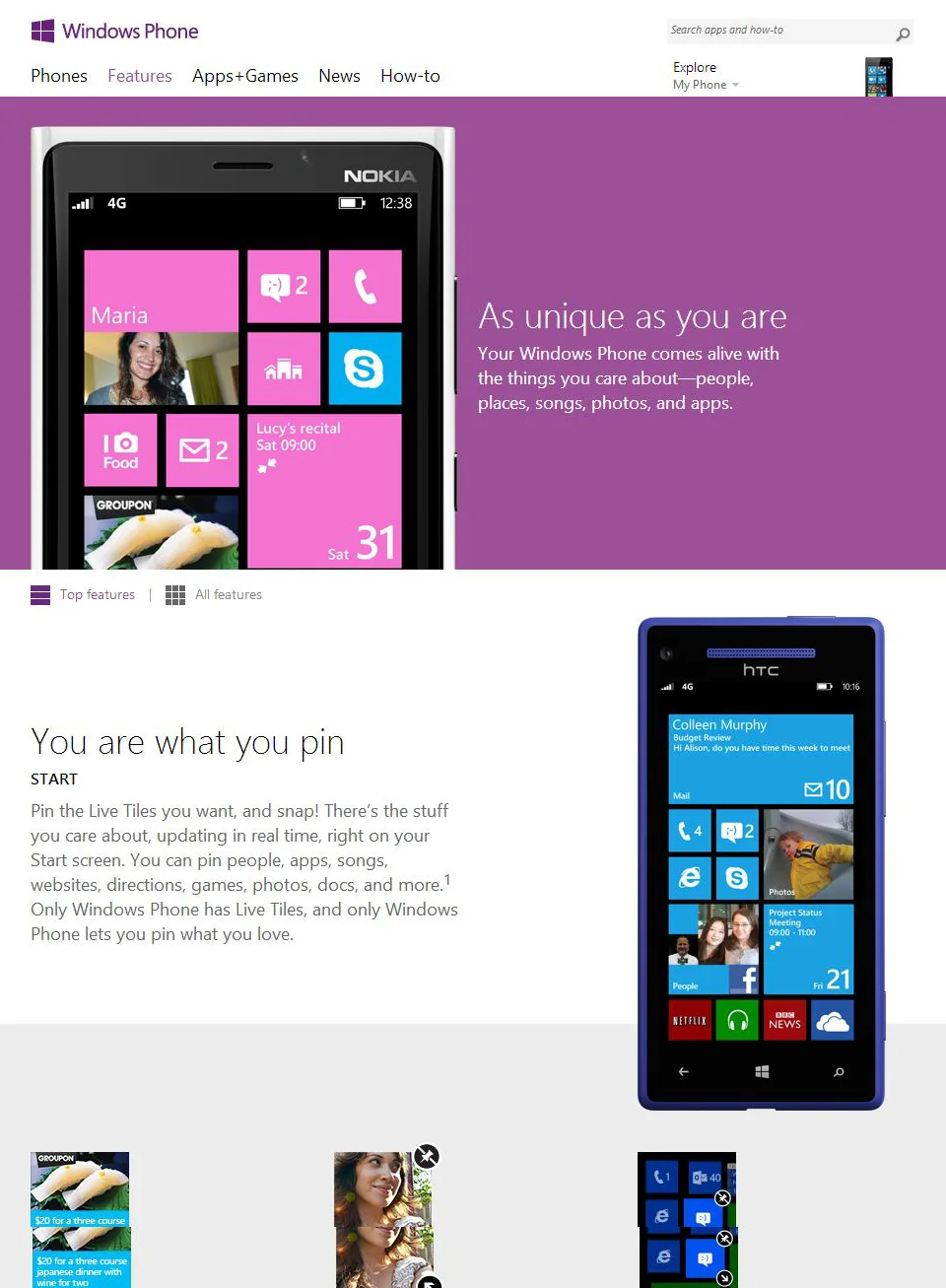 My team was asked to refresh the Windows phone features page, I helped concept while working with the client to outline the top reasons to choose a Windows phone and executed the design with the help of my creative director.